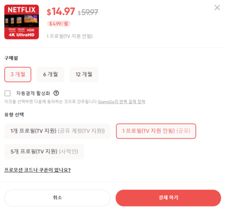 겜스고 넷플릭스로 보는 방법 (5% 추가 할인 적용 받는 방법)