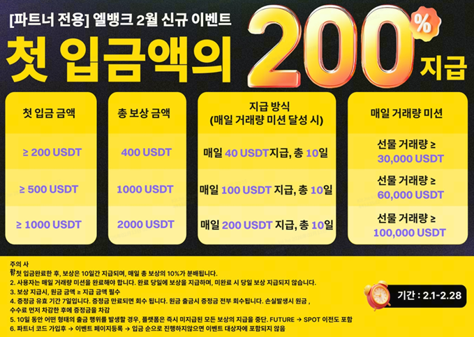 이런 변동성 장세에서는 안정적인 거래소 선택이 무엇보다 중요합니다. 갑작스러운 가격 변동 시 거래소 서버가 다운되거나, 유동성이 부족해서 원하는 가격에 거래하지 못하는 상황을 피해야 합니다. 저는 최근 2015년부터 운영되어 온 엘뱅크(LBank)를 사용하고 있는데, 시장 급변 상황에서도 안정적이고 유동성도 좋아서 만족하며 거래하고 있습니다. 특히 2월에는 신규 가입 이벤트와 입금 이벤트도 진행 중이라 관심 있으신 분들은 확인해보시면 좋을 것 같습니다.